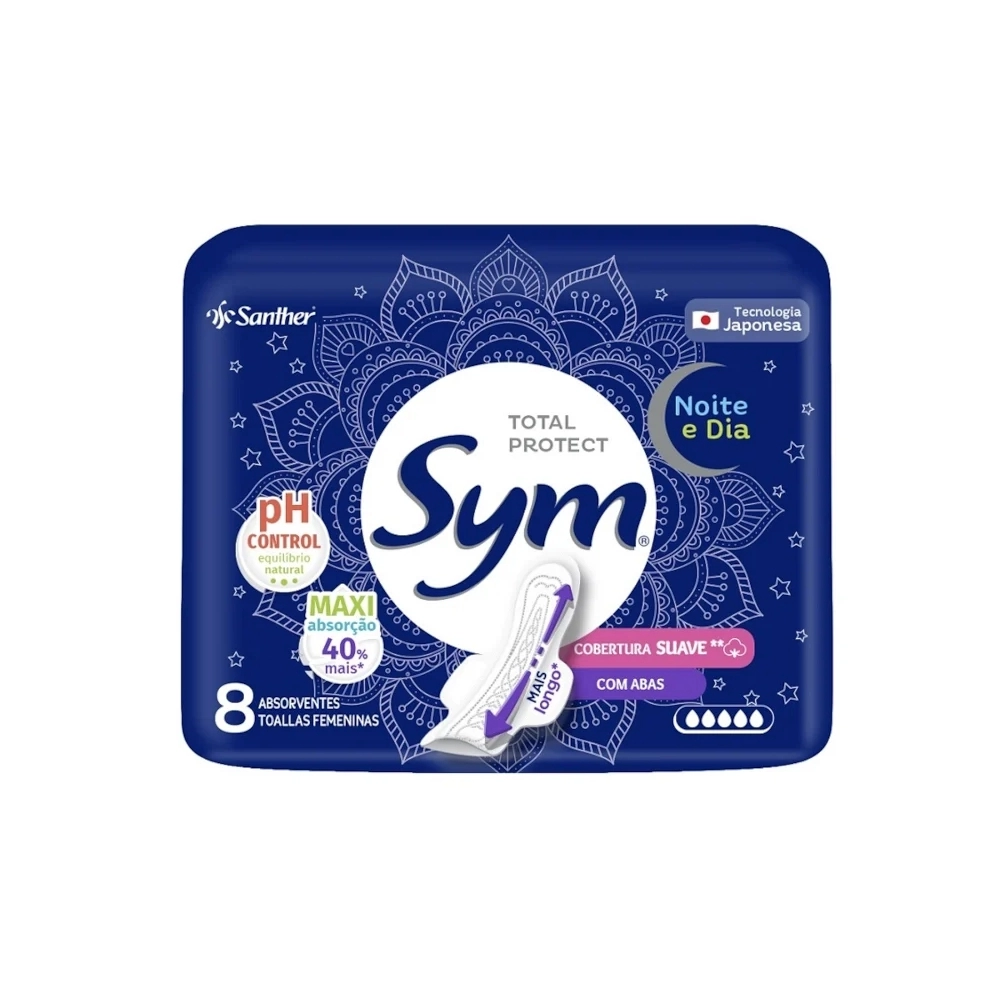 HIGIENE E BELEZA>HIGIENE INTIMA>ABSORVENTE>Absorvente Sym Noite & Dia Cobertura Suave Com Abas 08 und
