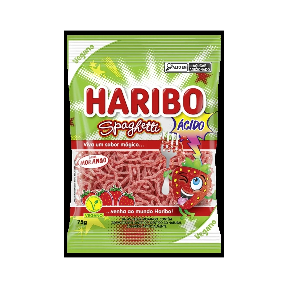 DOCES E GELEIAS>BALA DE GELATINA>Bala Haribo Gel Spaghetti Morango 75g