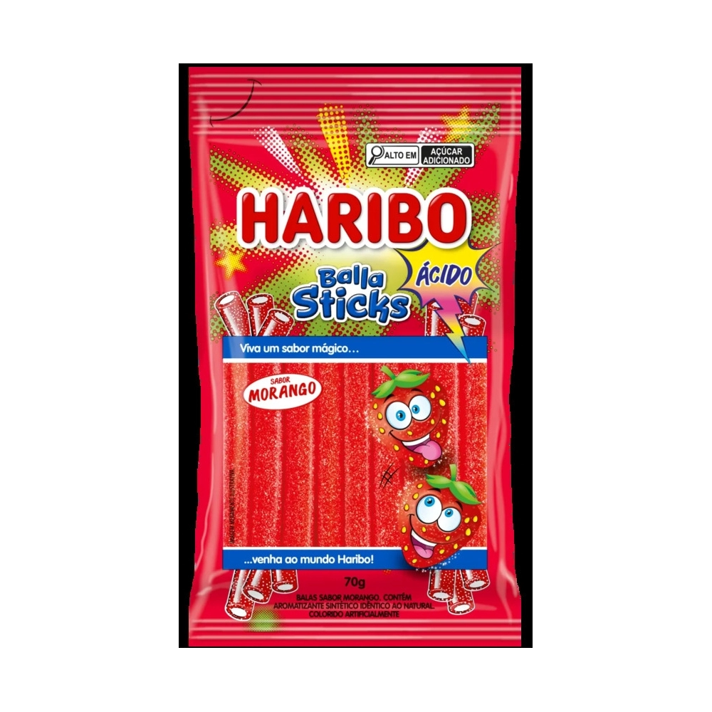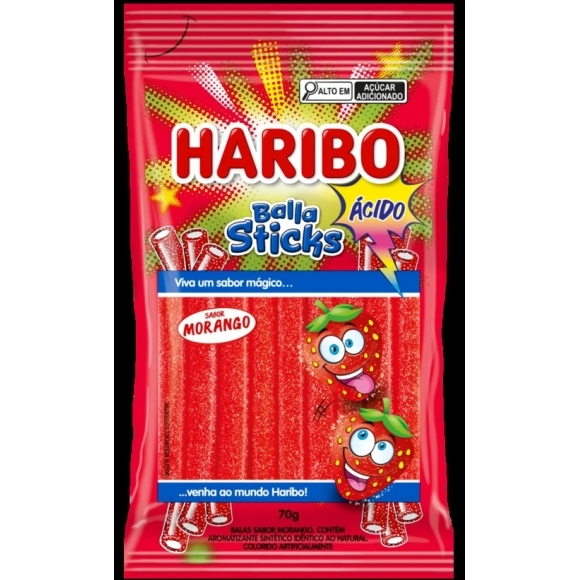 DOCES E GELEIAS>BALA DE GELATINA>Bala Haribo Sticks Morango Ácido 70g