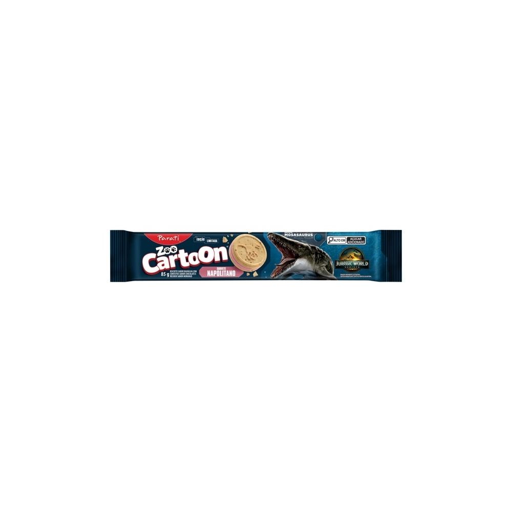 BISCOITOS E SALGADINHOS>BISCOITOS RECHEADOS>Biscoito Recheado Zoo Cartoon Jurassic Napolitano Parati 85g