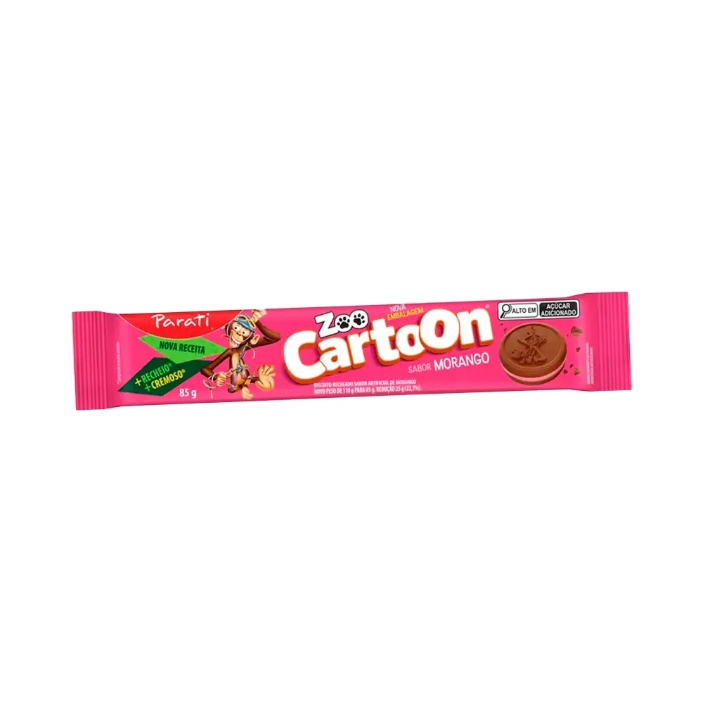 BISCOITOS E SALGADINHOS>BISCOITOS RECHEADOS>Biscoito Recheado Zoo Cartoon Morango Parati 85g