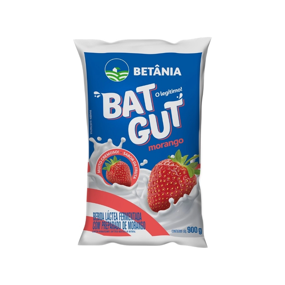 LATICINIOS>LEITE FERMENTADO>LEITE FERMENTADO>Bebida Láctea Fermentada Morango Bat Gut Betânia 900g