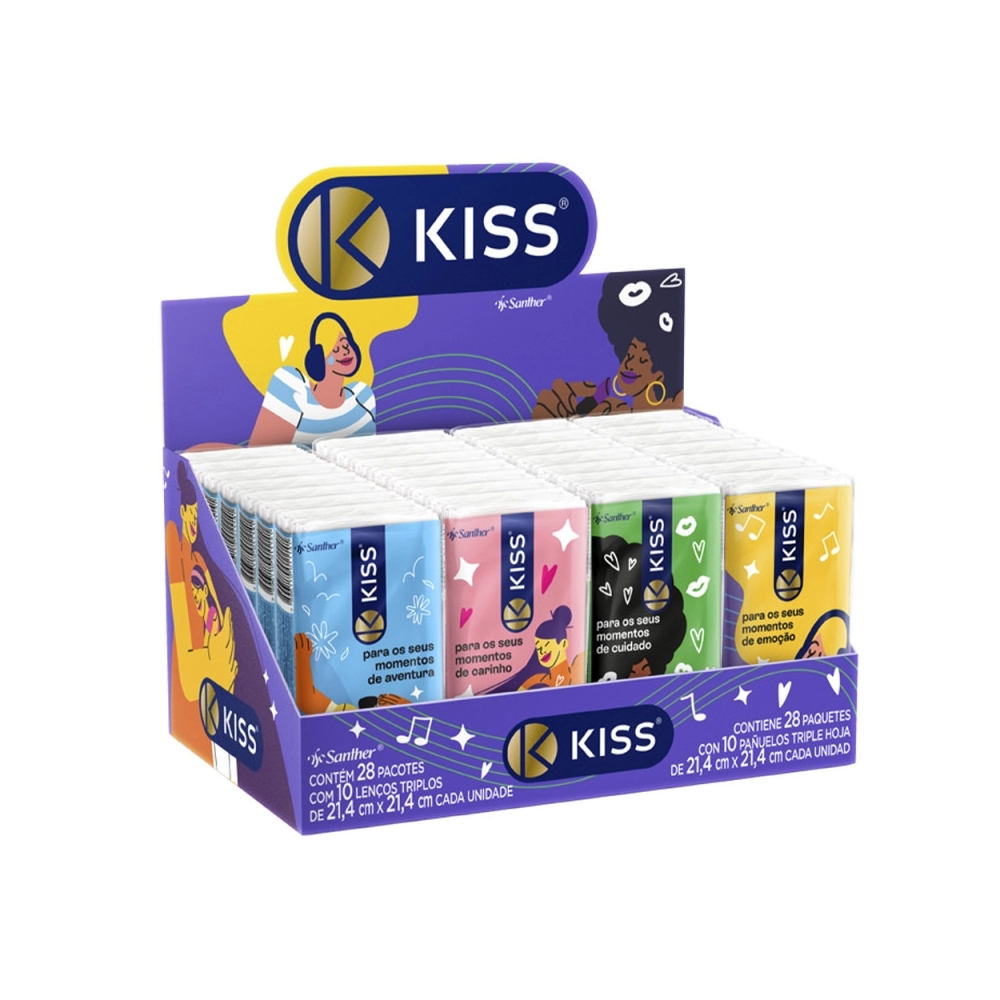 HIGIENE E BELEZA>HIGIENE FACIAL>LENÇO>Lenço Facial Kiss De Bolso Folha Tripla Dp Com 28 und