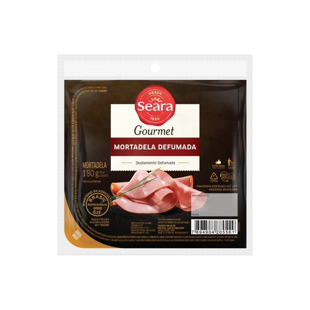 REFRIGERADOS>FRIOS>MORTADELA E SALAME>Mortadela Fatiada Defumada Seara Gourmet 180g