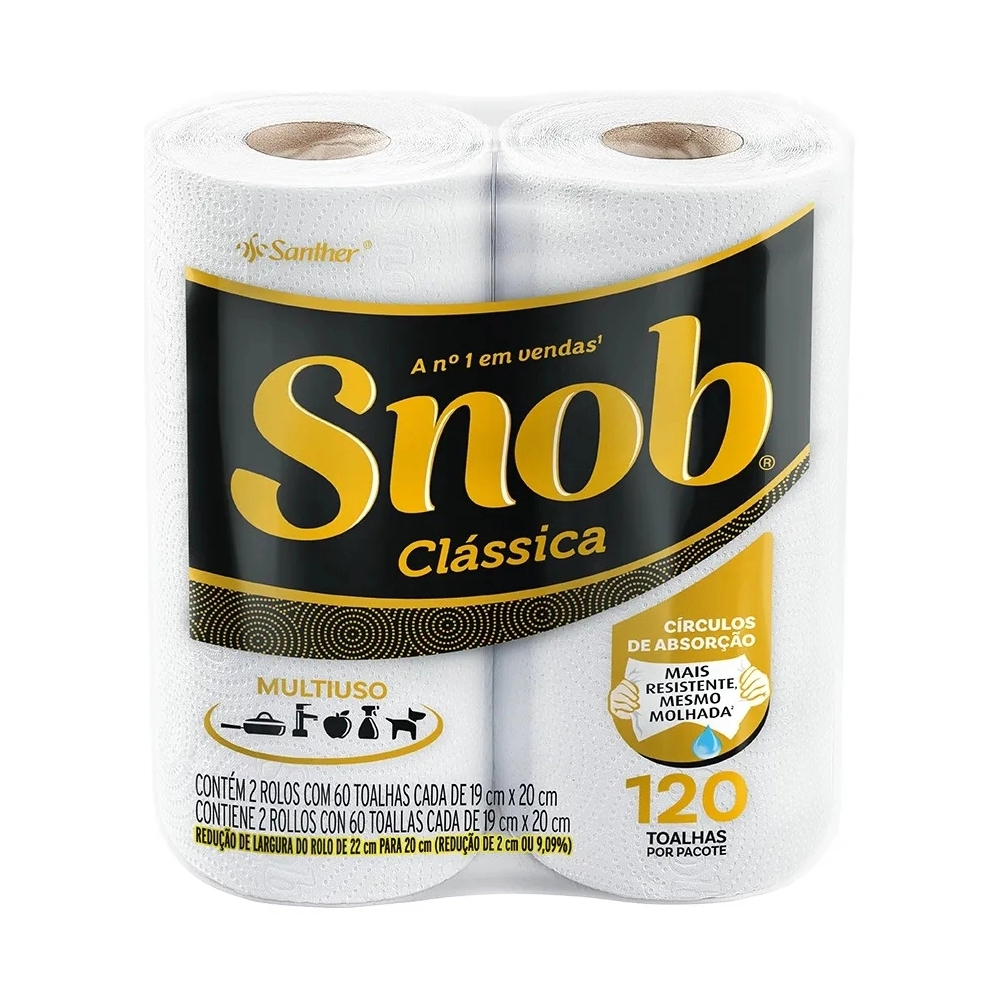 CASA E COZINHA>HIGIENE INTIMA>PAPEL>Papel Toalha Snob Multiuso Folha Dupla Com 02 Rolos 120Fls