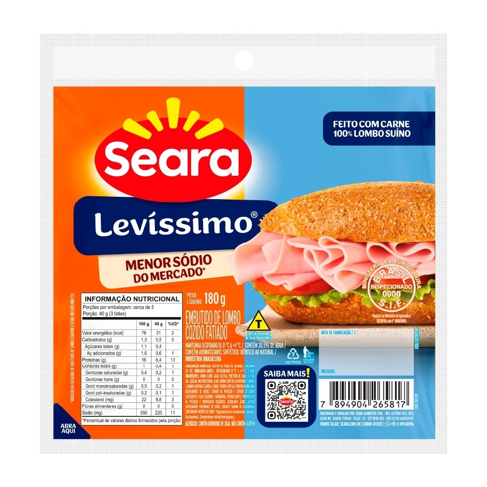REFRIGERADOS>FRIOS>PRESUNTO E DERIVADO>Levíssimo Fatiado Seara 180g