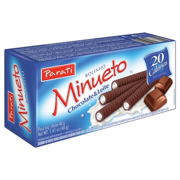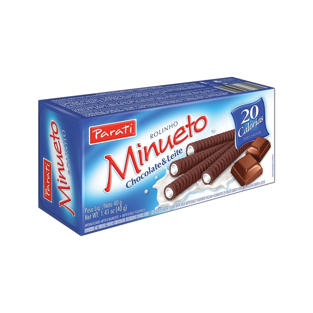BISCOITOS E SALGADINHOS>ROLINHO WAFER>Rolinho Wafer Minueto Chocolate E Leite Parati 40g