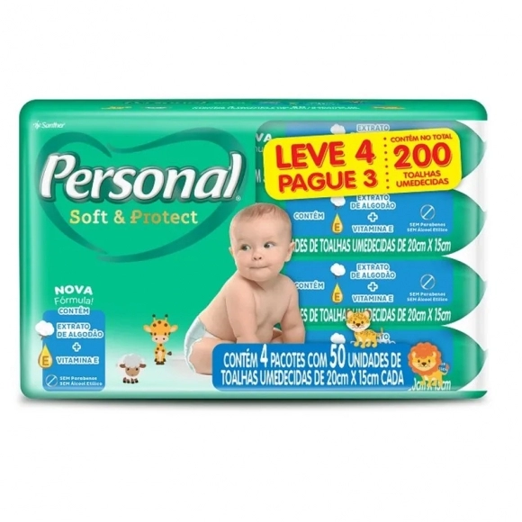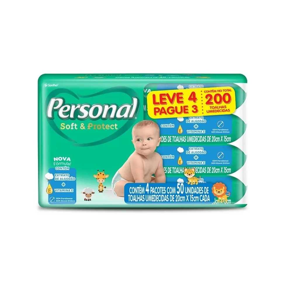 HIGIENE E BELEZA>HIGIENE INTIMA>TOALHA>Toalha Umedecida Personal Baby Soft & Protect Promopack Com 04 und